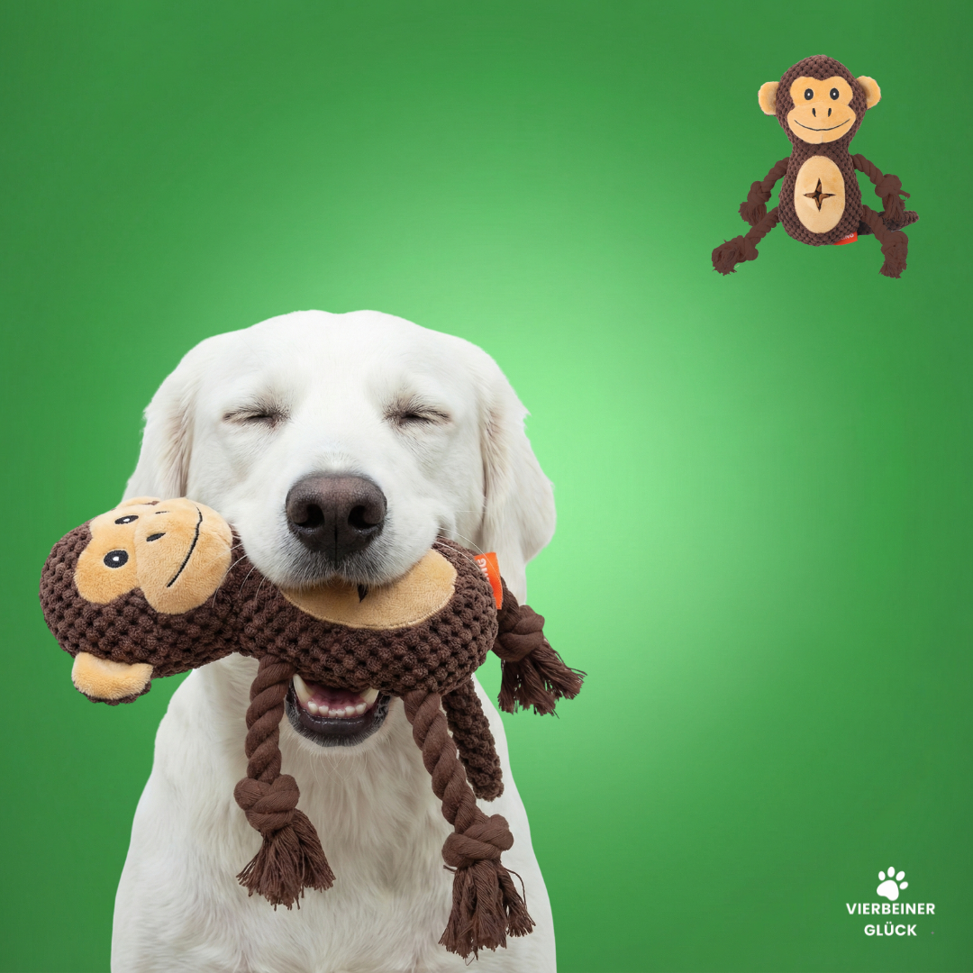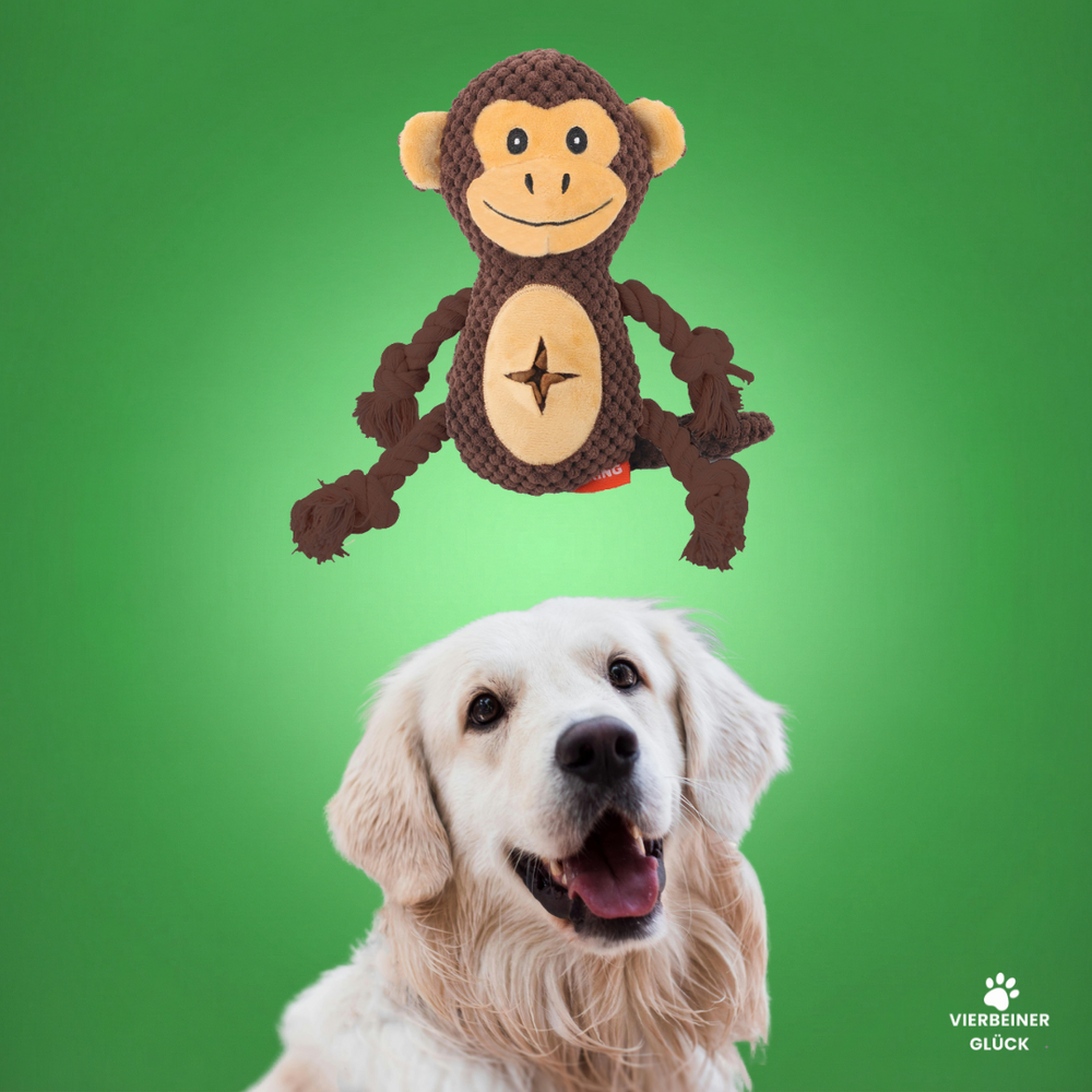 Das ist nicht einfach nur ein Kuscheltier, sondern ein echtes Multitalent für deinen Hund! Dieser freundliche Affe bringt alles mit, was ein Lieblingsspielzeug braucht: Er ist weich, fordert zum Spielen auf und hält sogar eine kleine Belohnung bereit.